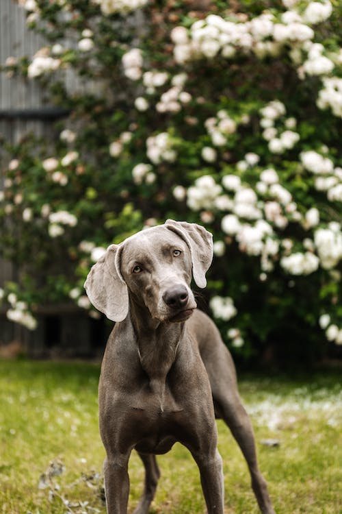 Weimaraners were originally bred for hunting and are considered high-energy dogs. This breed loves to engage in outdoor activity time with family and does well with families who like to stay busy. About 60 minutes of activity time a day for this breed will help keep him happy and healthy.